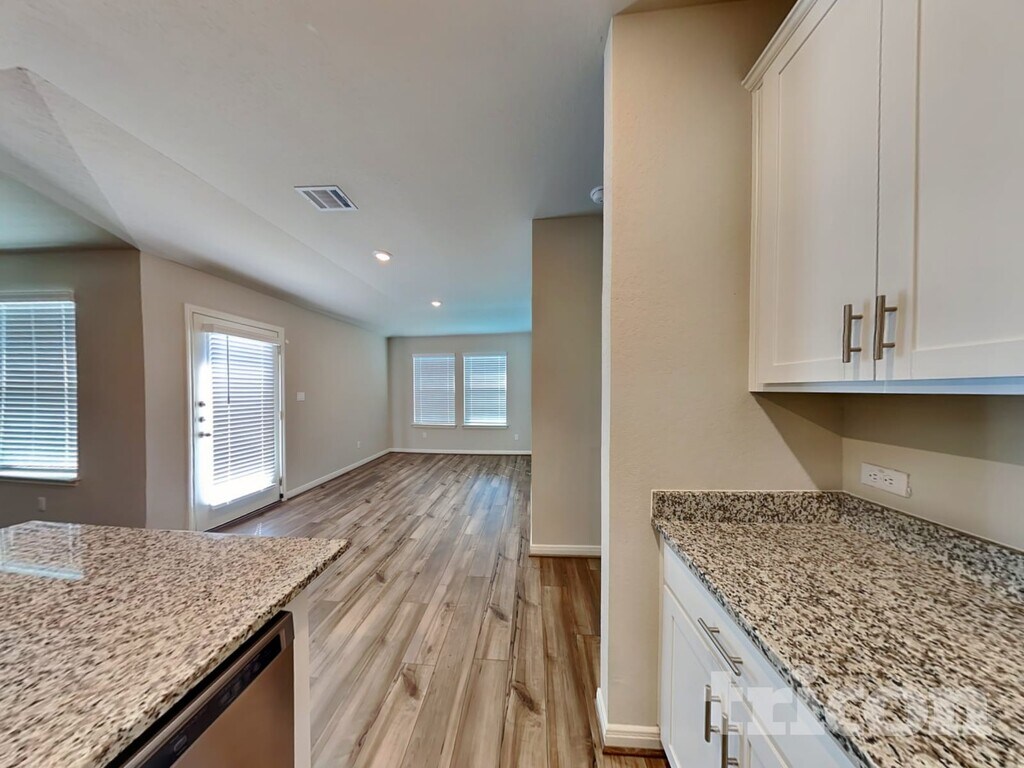 - Wood-style flooring in living areas