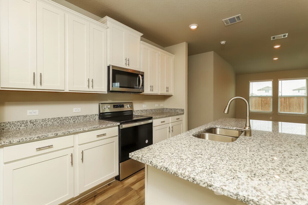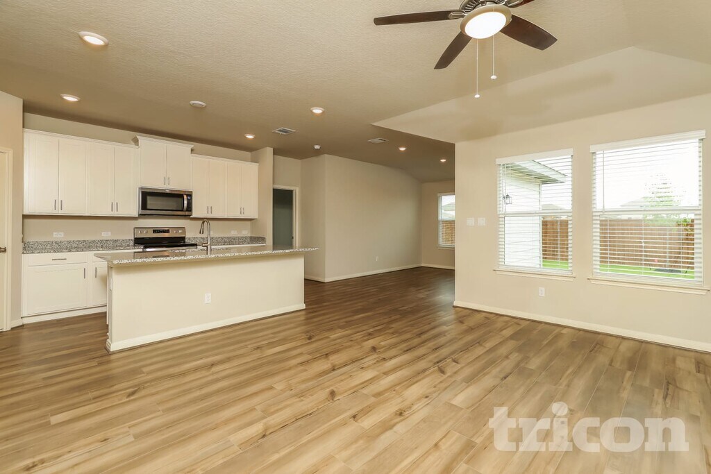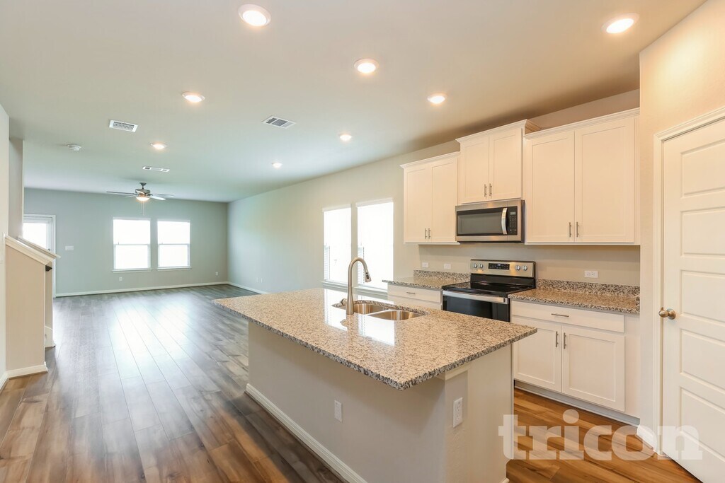 Tricon Abbott Place offers brand-new rental homes in St. Hedwig, just 25 miles east of San Antonio. The community features six distinct three- or four-bedrooms floor plans. Every home includes a gourmet kitchen, granite countertops, stainless steel appliances, wood-styling flooring, programmable thermostats, and fully fenced backyard. Most floor plans also include flex, office and/or game rooms. Enjoy fully maintained community amenities including a pool and pavilion, sundeck with covered outdoor seating areas, tot lot/playground, and open lawn and play areas.