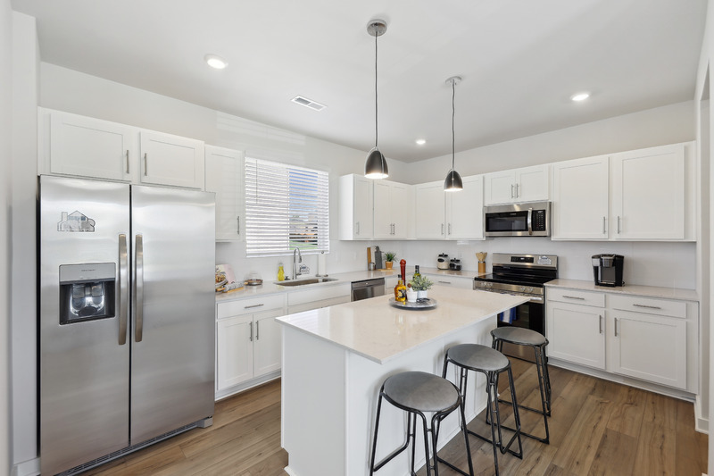 Every home includes stainless-steel appliances, quartz countertops, designer finishes and smart home technology.