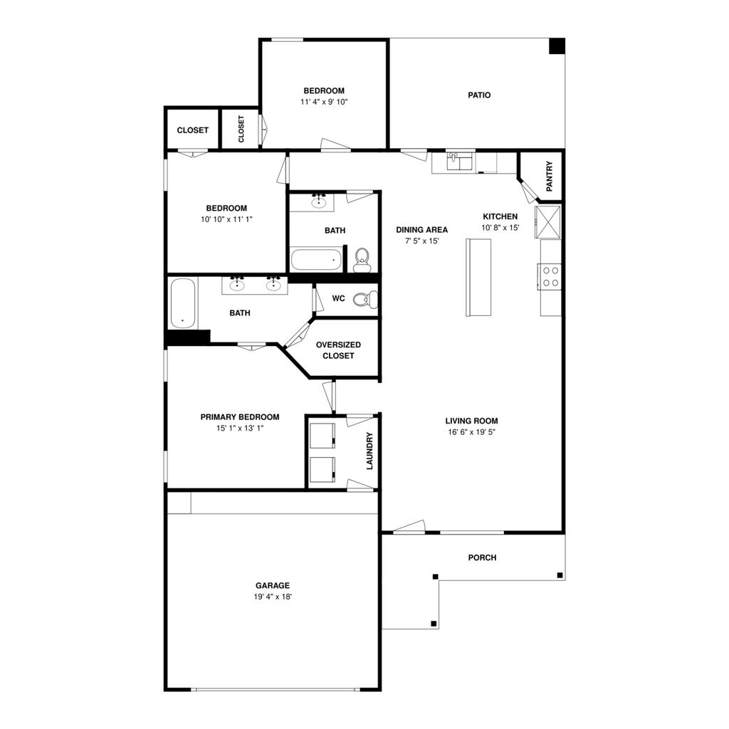 3 Beds, 2 Baths, 1508 sq ftAvailable NowModel Gallery