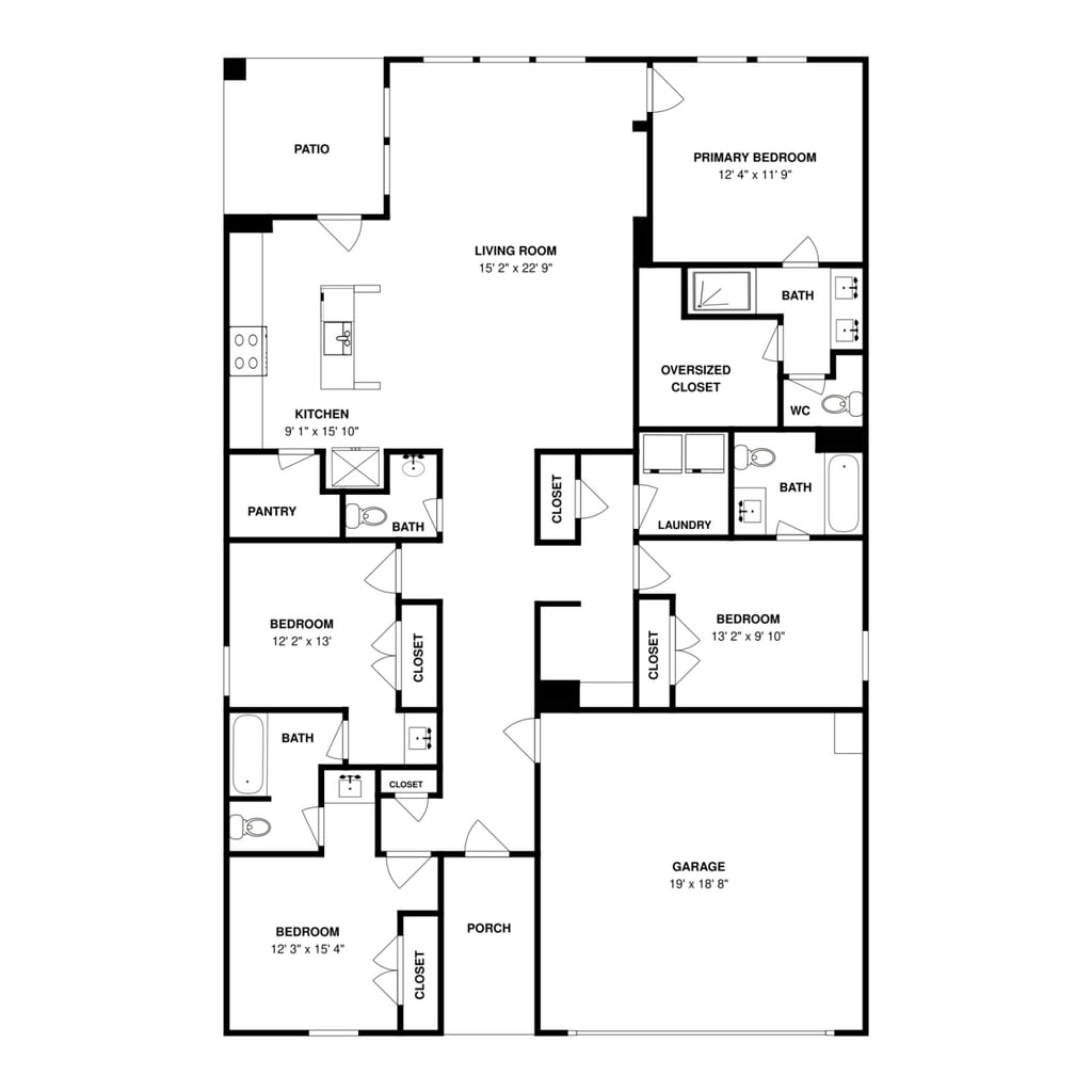 Apartment Model: Plan 3From $2,7294 Bedroom, 2.5 Bath, 1899 sq ftUnavailableFloorplansPhotos![]()