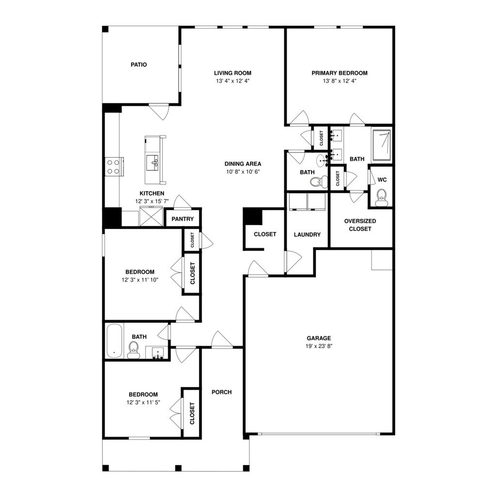 3 Beds, 2 Baths, 1534 sq ftAvailable NowModel Gallery