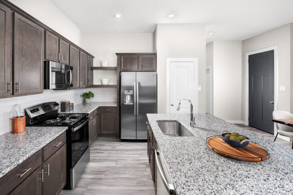 - Granite kitchen countertops with full backsplash