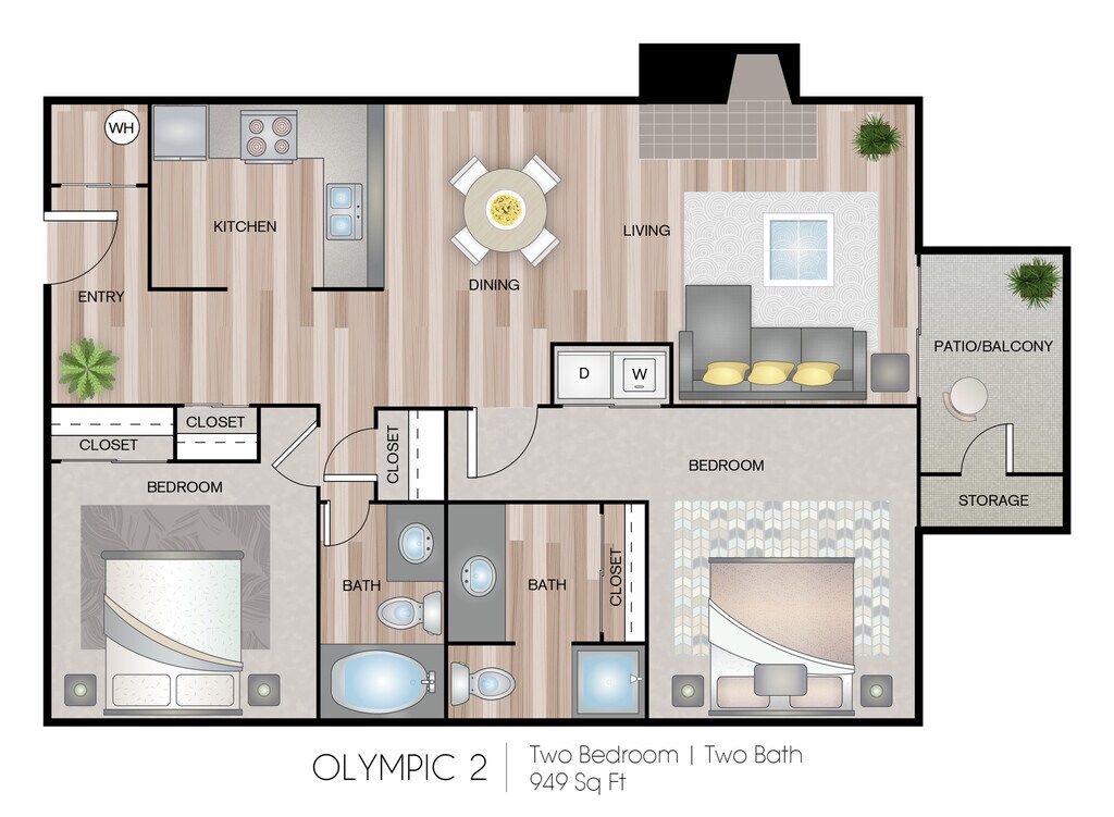 Apartment Model: Olympic 2From $1,8552 Bedroom, 2 Bath, 949 sq ftAvailable Now![]()