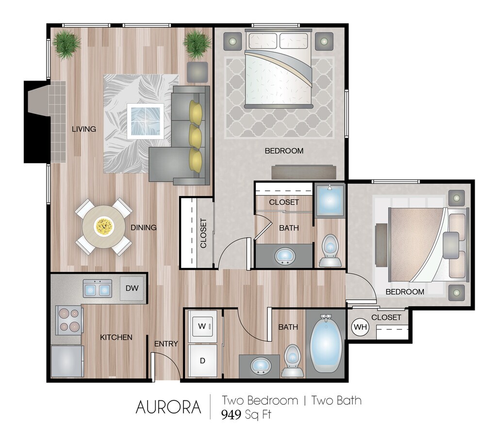 2 Beds, 2 Baths, 949 sq ftAvailable NowModel Gallery