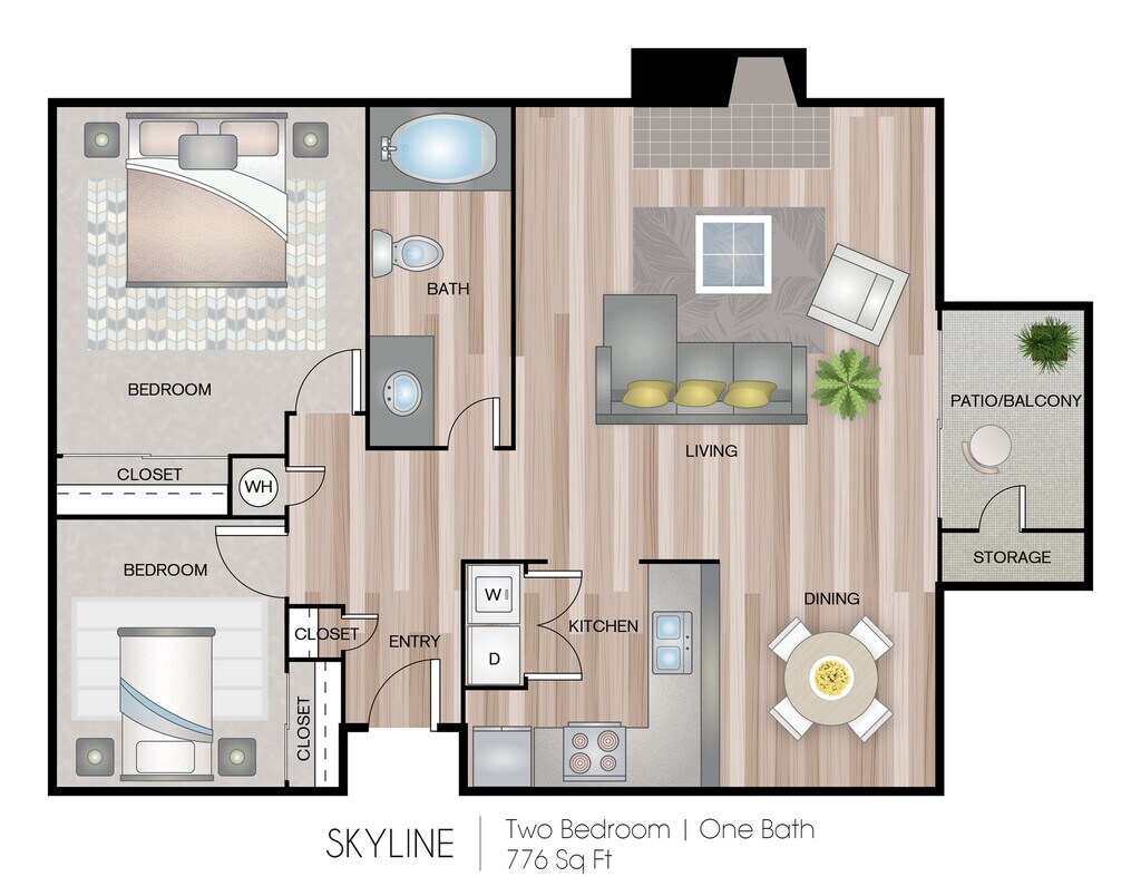 2 Beds, 1 Bath, 776 sq ftAvailable Dec 7Model Gallery