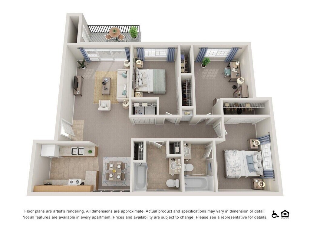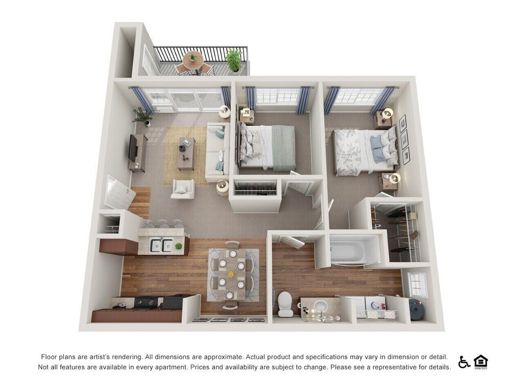 Apartment Model: Two Bedroom, Two BathroomFrom $1,2682 Bedroom, 2 Bath, 895-935 sq ftAvailable NowFloor plans are artist's rendering. All dimensions are approximate. Actual product and specifications may vary in dimension or detail. Not all features are available in every rental home. Prices and availability are subject to change. Base rent is based on monthly frequency. Additional fees may apply, such as but not limited to package delivery, trash, water, amenities, etc. Deposits vary. Please see a representative for details.