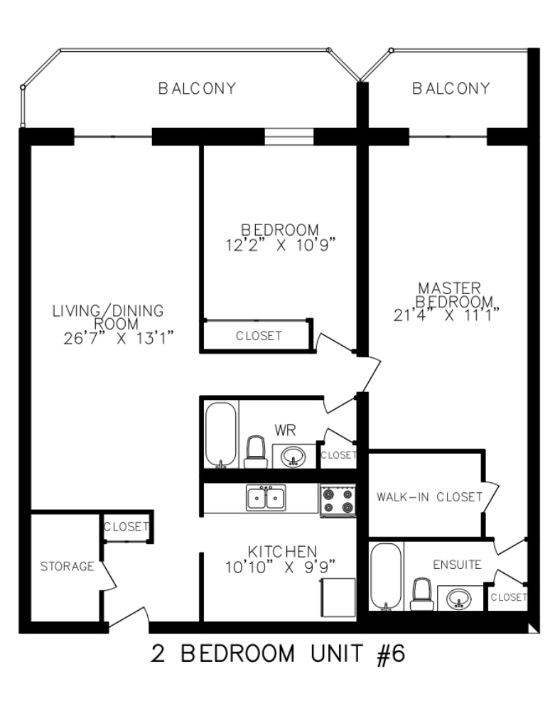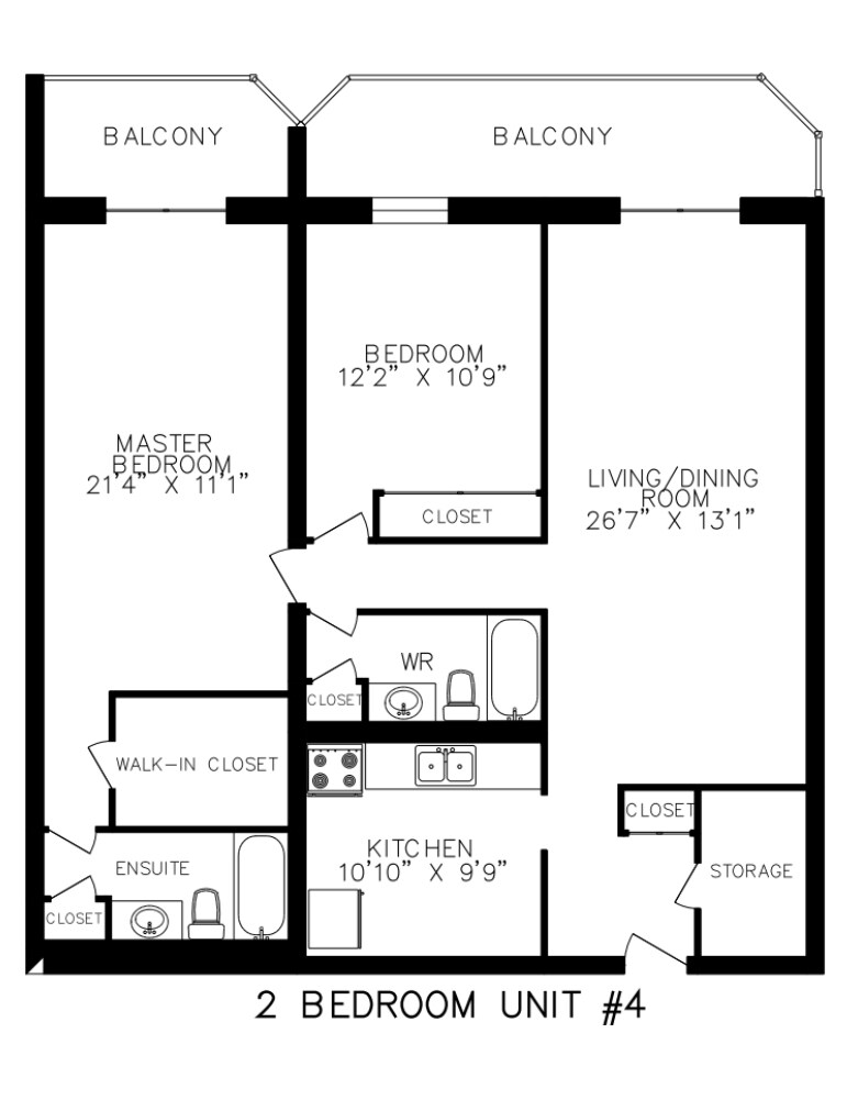 1 Bedroom - Floorplan 4 2 Bedrooms