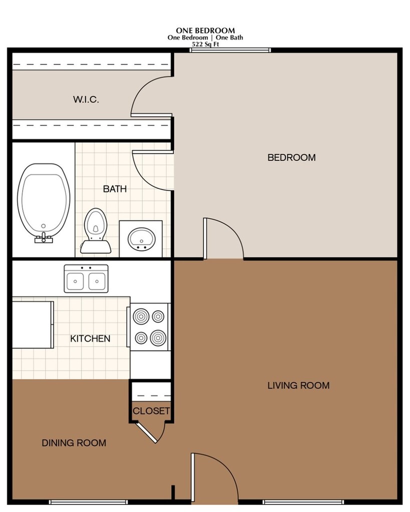 Apartment Model: 1x1 Large$7001 Bedroom, 1 Bath, 522 sq ftAvailable Now![]()