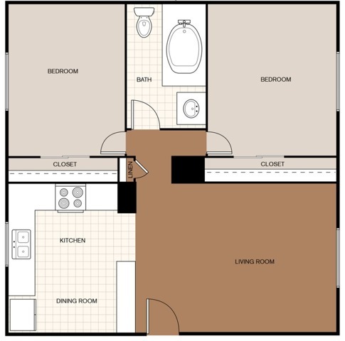 2 Beds, 1 Bath, 746 sq ftAvailable NowLargest 2 BedroomThis is the largest 2 Bedroom at this PropertyModel Gallery