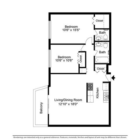 2 Bed 1.5 Bath - Floorplan 2 ![]()