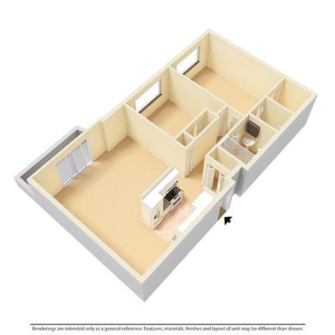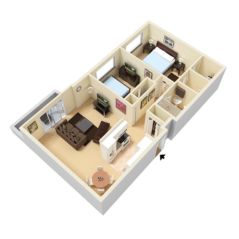 Apartment Model: 2 Bed 1 BathFrom $9892 Bedroom, 1 Bath, 840 sq ftAvailable March 3, 2026![]()