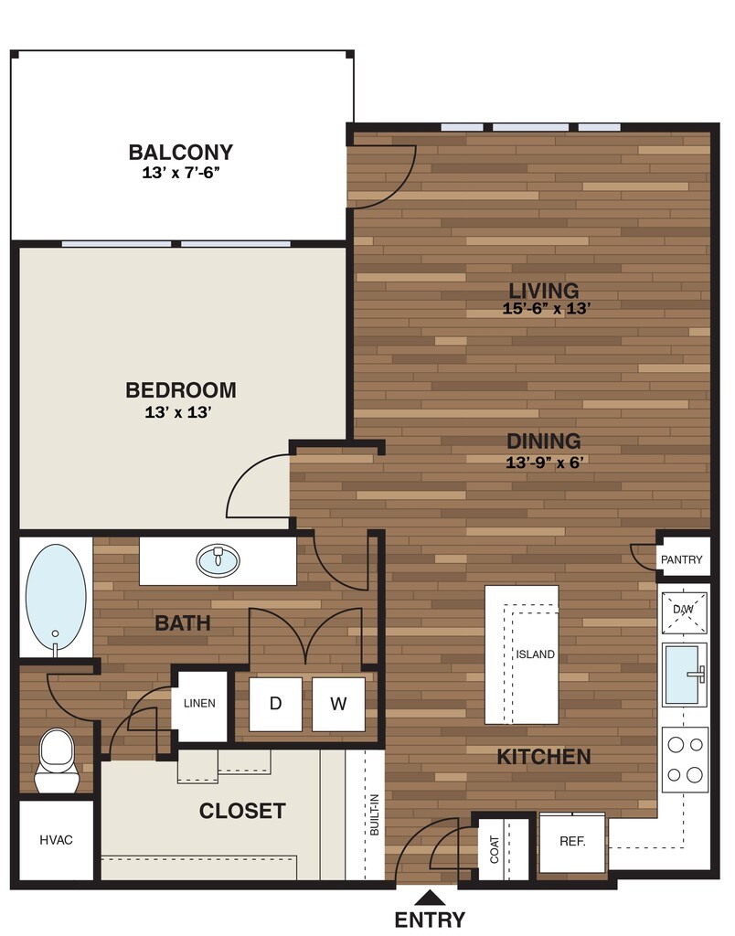 A15G - Floorplan 1 Apartment Unit: 4206Apartment Model: A15G1 Bedroom, 1 Bath, 904 sq ftAvailable NowA14G