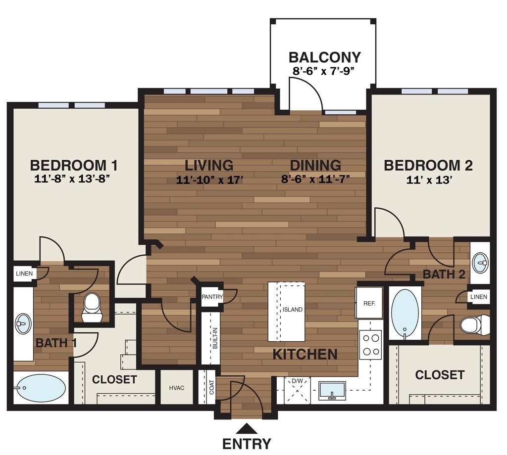 1 Bed, 1 Bath, 865 sq ftAvailable NowModel Gallery