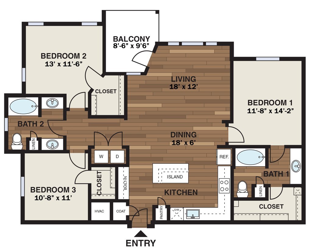 Apartment Model: A121 Bedroom, 1 Bath, 863 sq ftAvailable Now![]()