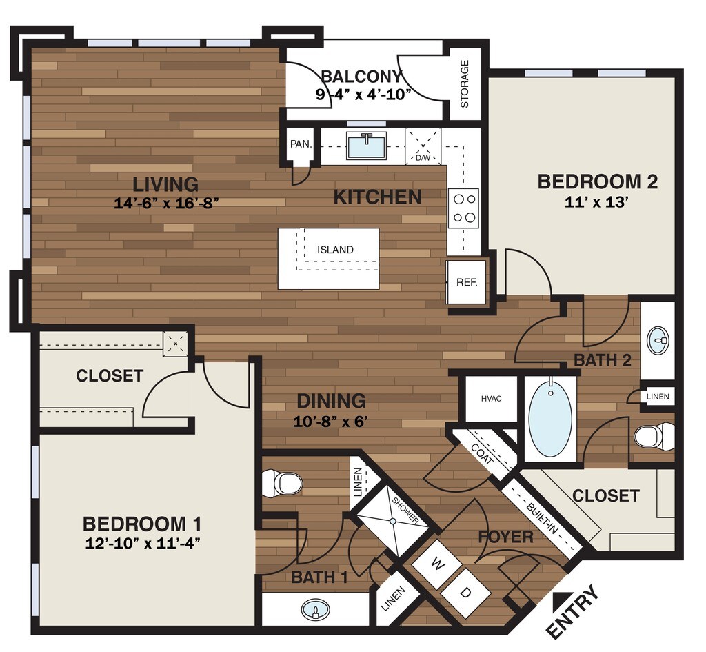 Apartment Model: A14G1 Bedroom, 1 Bath, 865 sq ftAvailable Now![]()