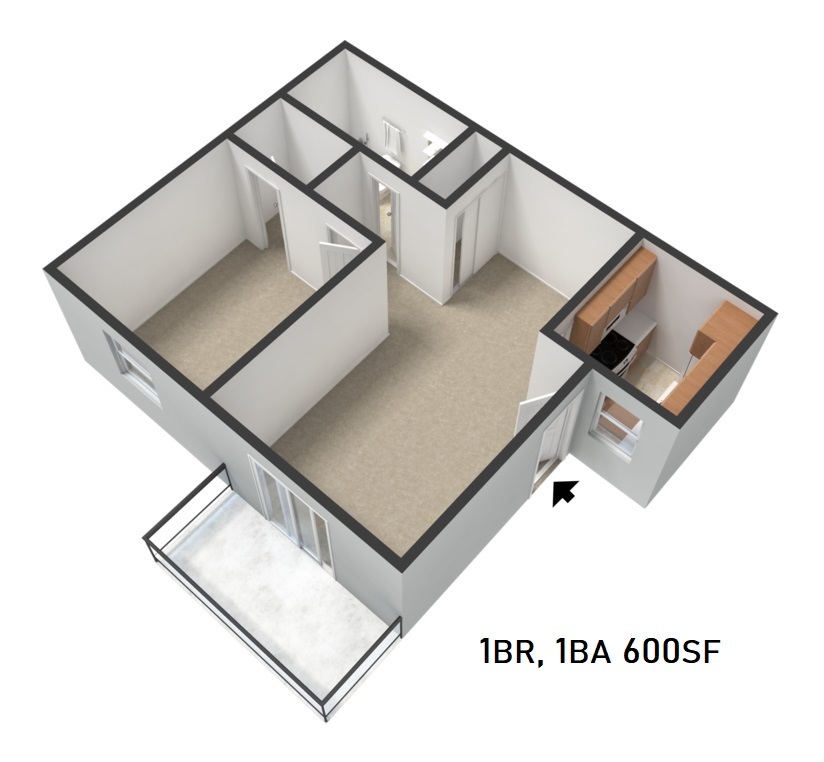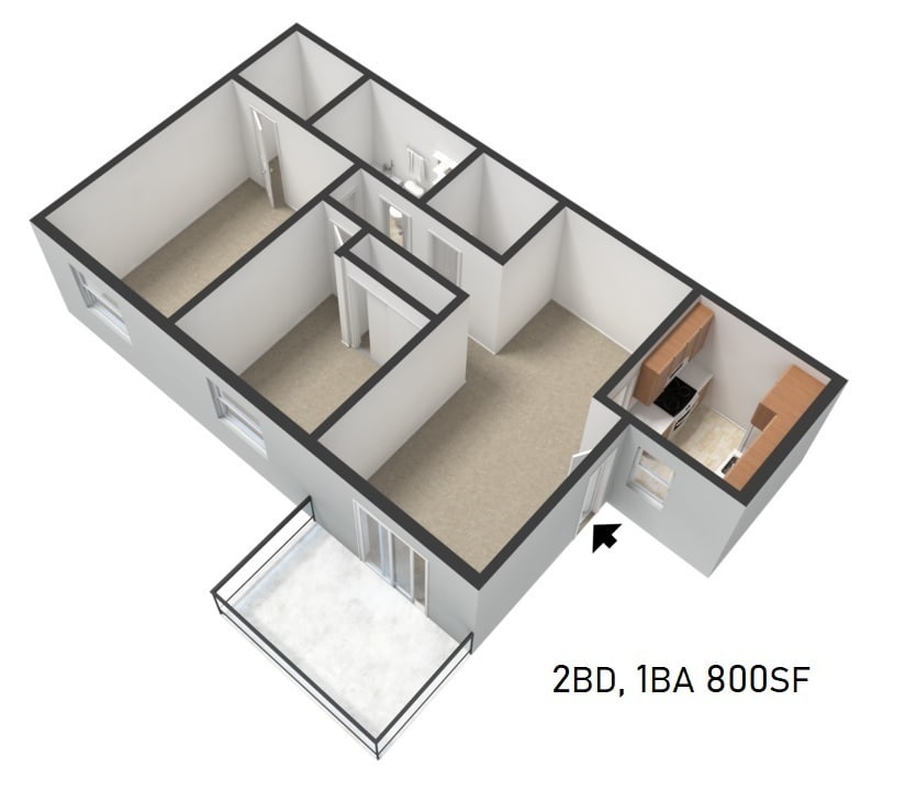 2 Beds, 1 Bath, 600-800 sq ftAvailable NowModel Gallery