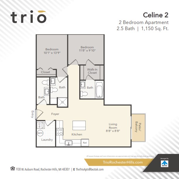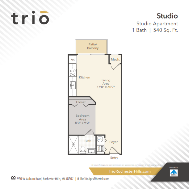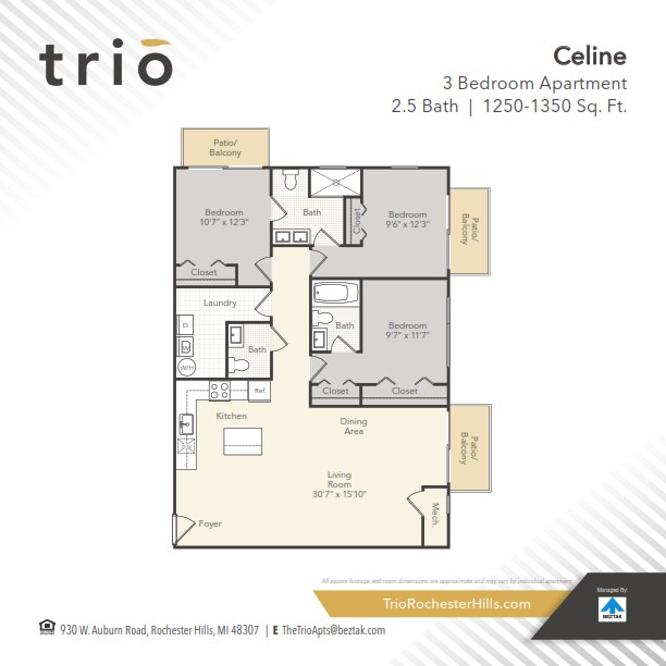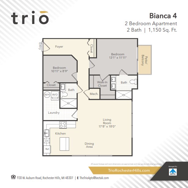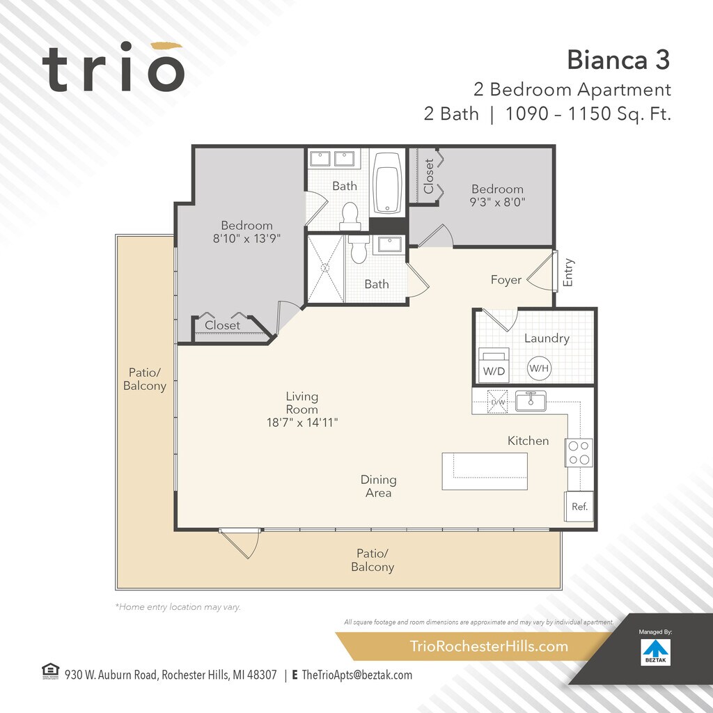 Trio Apartments is located in the Rochester Neighborhood and 48307 Zip code of Rochester Hills, MI. This community is professionally managed by BEZTAK Properties