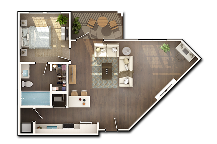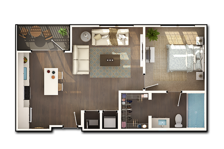 1 Bed, 1 Bath, 709-726 sq ftAvailable NowModel Gallery