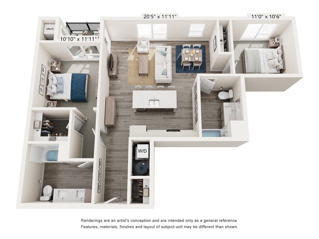 1 Bed, 1 Bath, 835 sq ftPlus FeesAvailable NowModel Gallery
