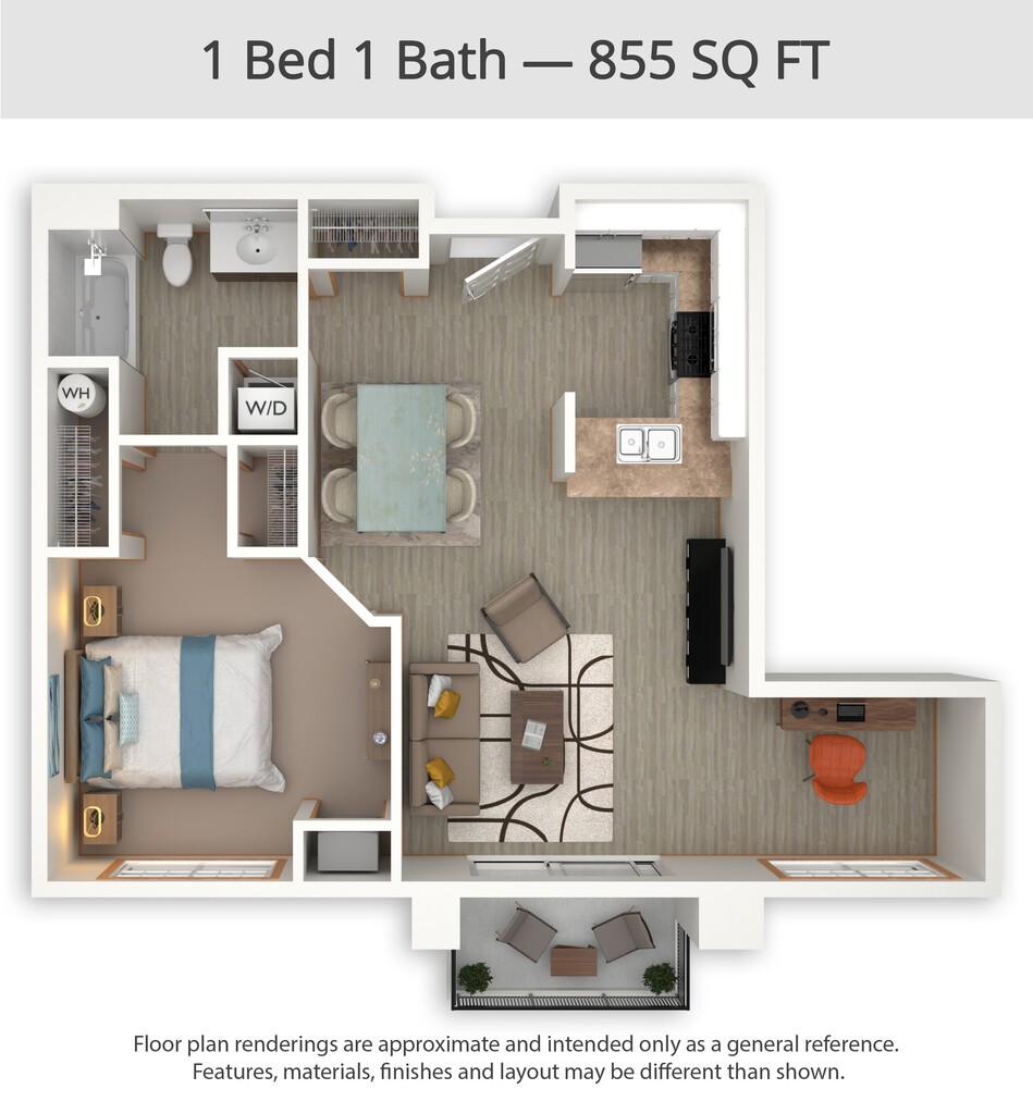 1 Bed, 1 Bath, 855 sq ftModel Gallery