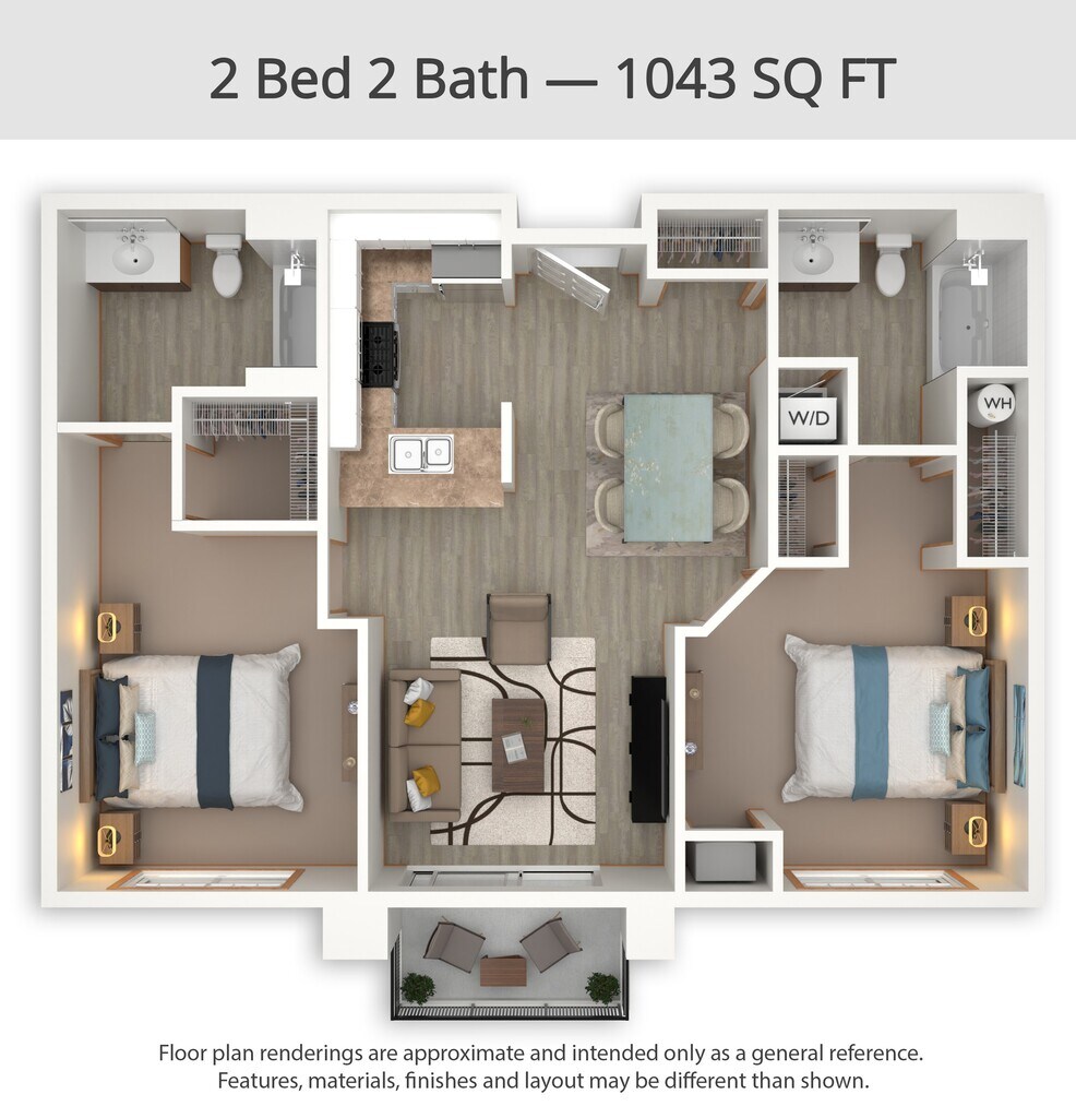 2 Beds, 2 Baths, 1043 sq ftAvailable NowModel Gallery