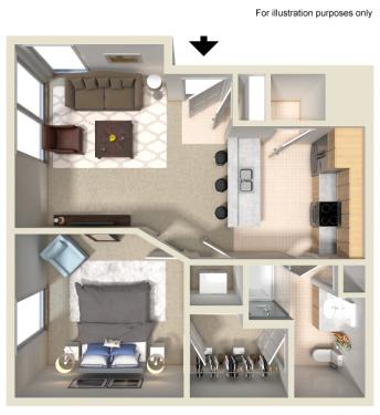 1 Bed, 1 Bath, 647 sq ftAvailable NowModel Gallery