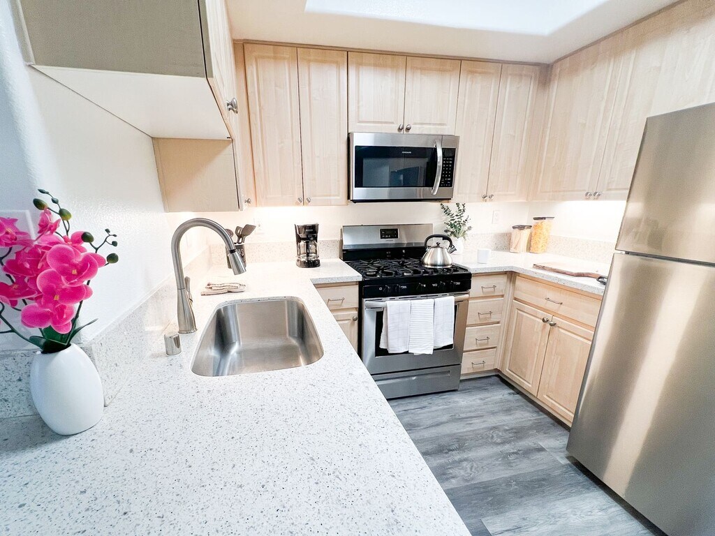 Modern 2-bedroom, 2-bathroom unit ideally located in the heart of West Los Angeles. Just steps from the vibrant Sawtelle dining scene, this unit features a stainless steel kitchen, central air conditioning, a cozy fireplace, large closets, in-unit washer and dryer, gated and secure underground parking, and a beautiful, tranquil courtyard.