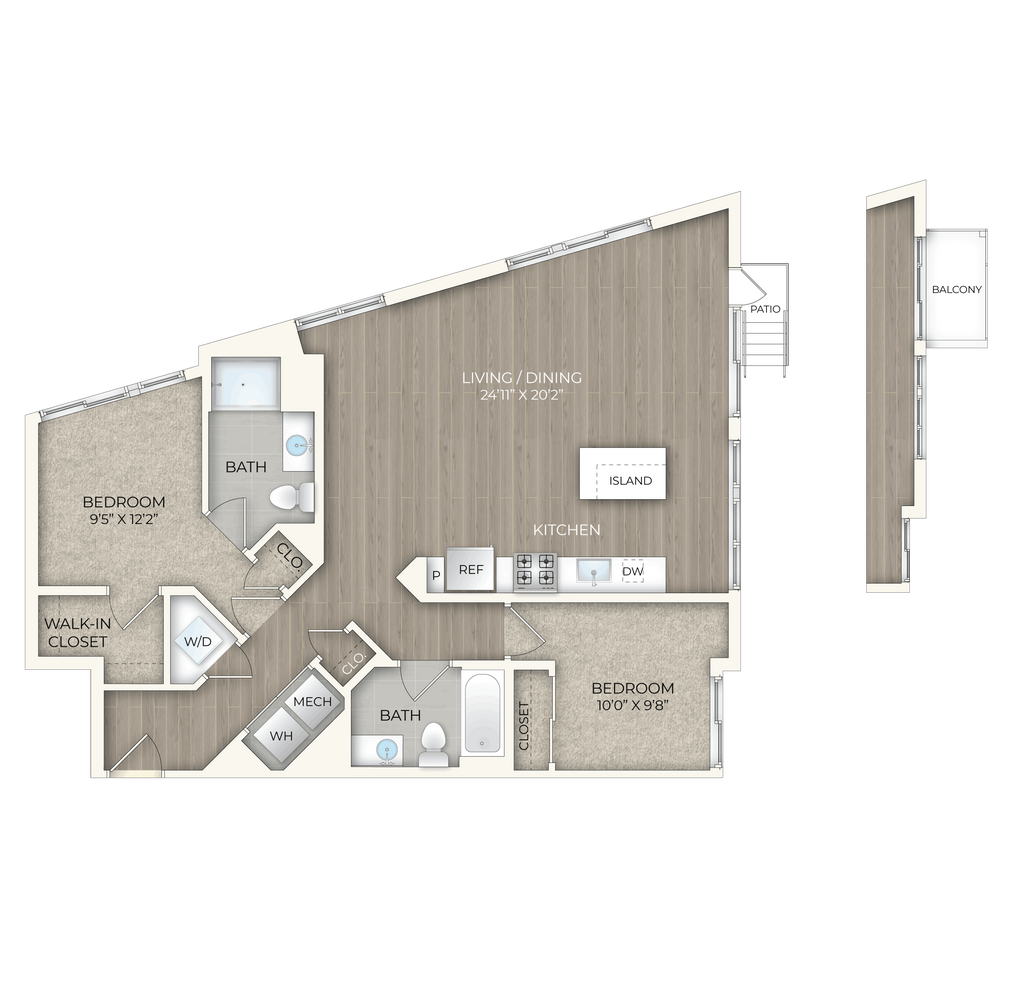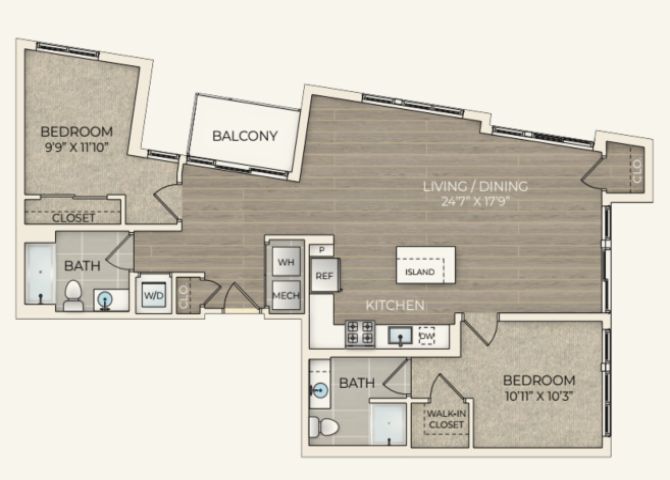 Modern designs, elegant finishes, and upscale amenities are waiting for you at Trove. Our Arlington apartments come in studio, one- and two bedroom layouts that are spacious and adaptable. Trove also has dens available. A variety of interior luxuries adorn them including large windows for natural light, quartz countertops, in-unit washers and dryers and more. As a resident of our pet friendly community you will also have exclusive access to rooftop pool with a sun deck, sports lounge, and controlled access parking among other life-enhancing amenities.