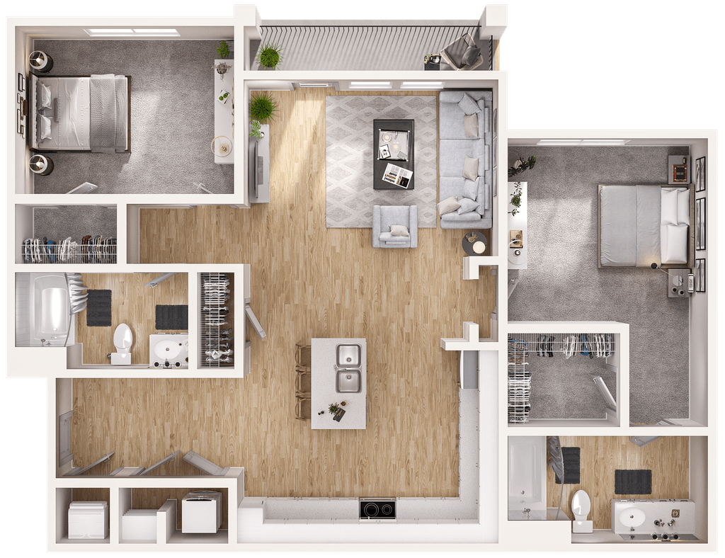 2 Beds, 2 Baths, 1018 sq ftAvailable NowModel Gallery