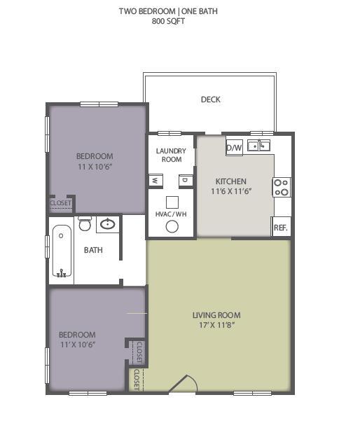 Apartment Model: 2 Bedroom 1 Bath2 Bedroom, 1 Bath, 800 sq ftAvailable Now![]()