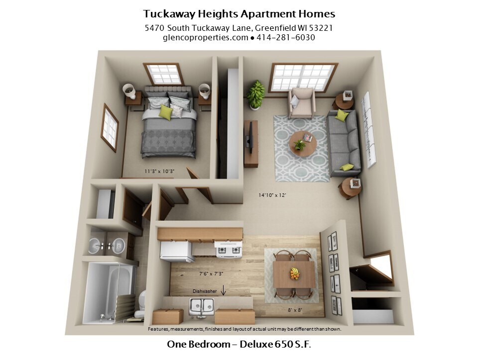 Please apply at glencoproperties.com! We offer 1 and 2 bedroom apartments and deluxe/premium apartments that include the gas for the heat, hot water, and cooking! Our spacious and updated deluxe apartments feature remodeled kitchens and bathrooms with quality oak cabinetry and include a dishwasher. Relax and enjoy your completely updated, sparking clean apartment home! Tucked away in a quiet, residential neighborhood, the park-like setting of Tuckaway Heights will be the perfect place for you to call home. Limited garages available - call for details! We are just minutes to all the conveniences you need to make your life easier - freeway access, shopping including Southridge Mall, 84South and many restaurants and so much more. Please call 414-281-6030 for your personal tour.