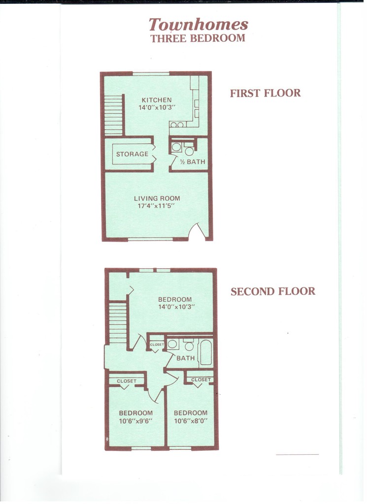 Three Bedroom One Bathroom - Floorplan 1 T5Three Bedroom Townhome