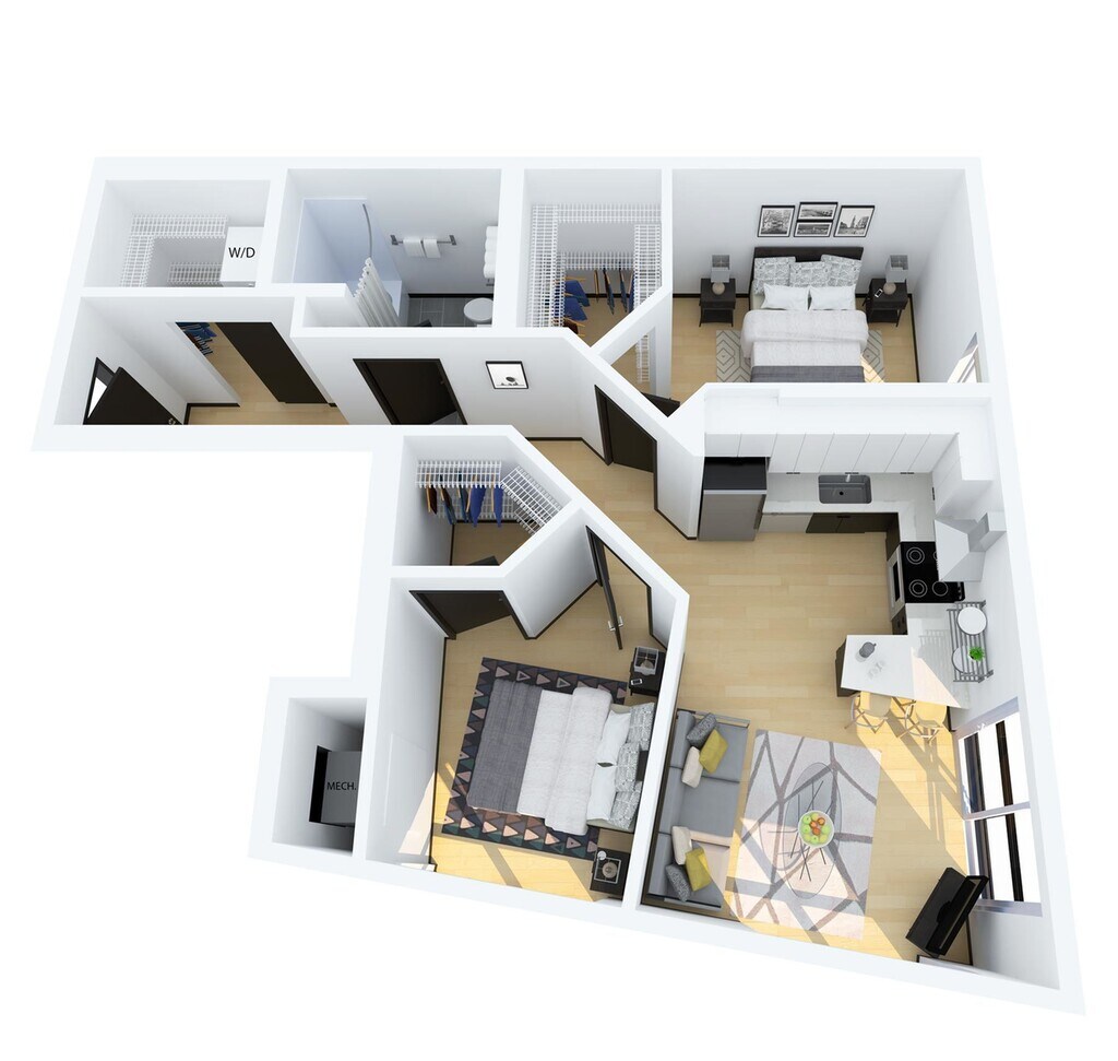 2 Beds, 1 Bath, 720 sq ftPlus FeesAvailable NowModel Gallery