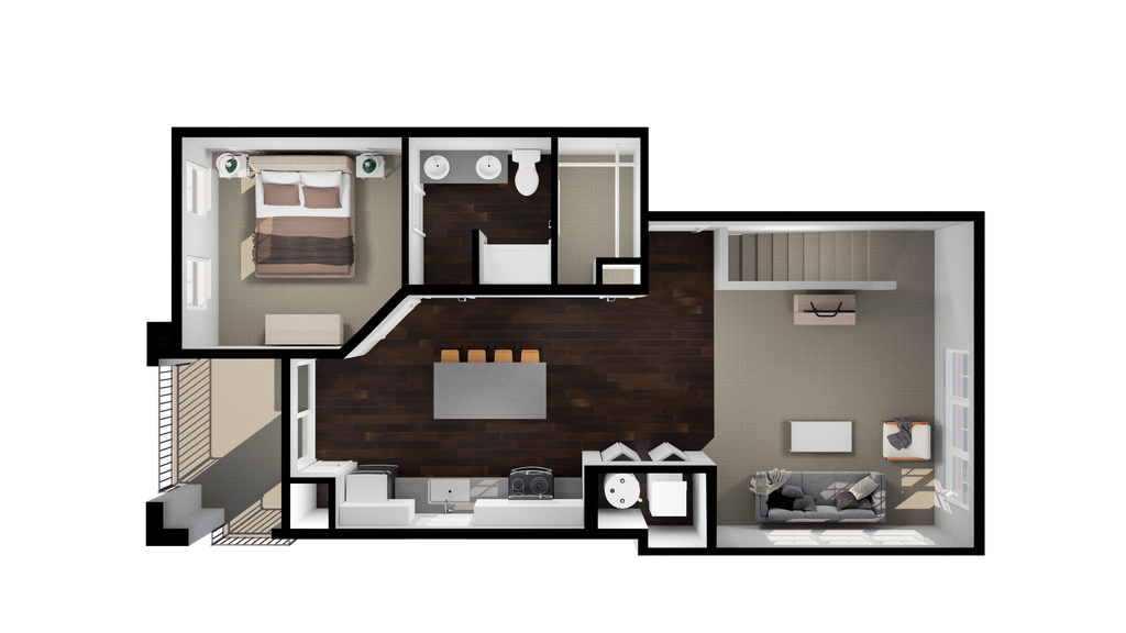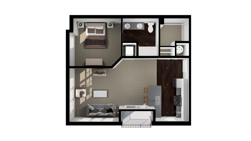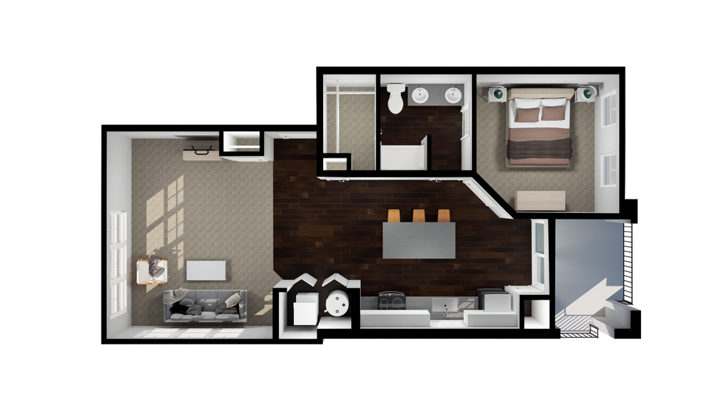 1 Bed, 1 Bath, 755 sq ftModel Gallery