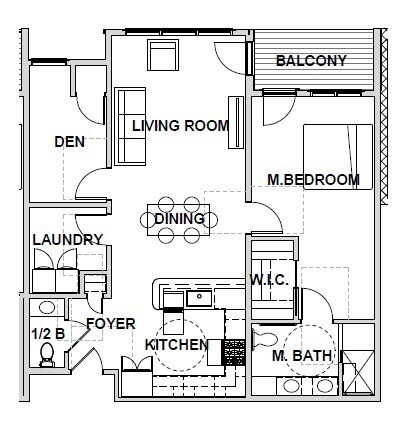 1 Bed, 1.5 Baths, 1105 sq ftModel Gallery