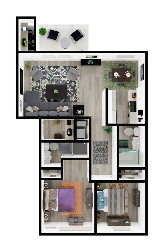 Apartment Model: 3 bed/2 bathFrom $1,1003 Bedroom, 2 Bath, 998 sq ftAvailable Now![]()