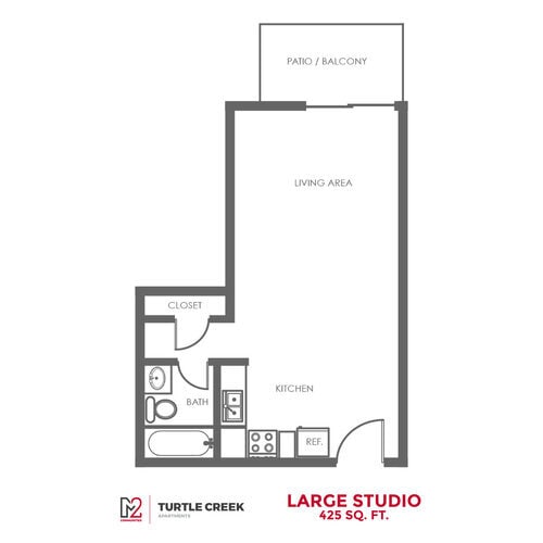 Apartment Model: Studio Large$740Studio, 1 Bath, 425 sq ftUnavailableStudio Large - Floorplan 1 1 Bedroom