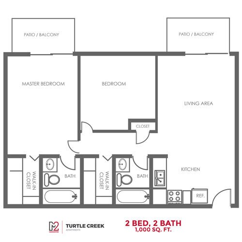 2 Beds, 2 Baths, 1000 sq ftLargest 2 BedroomThis is the largest 2 Bedroom at this PropertyModel Gallery