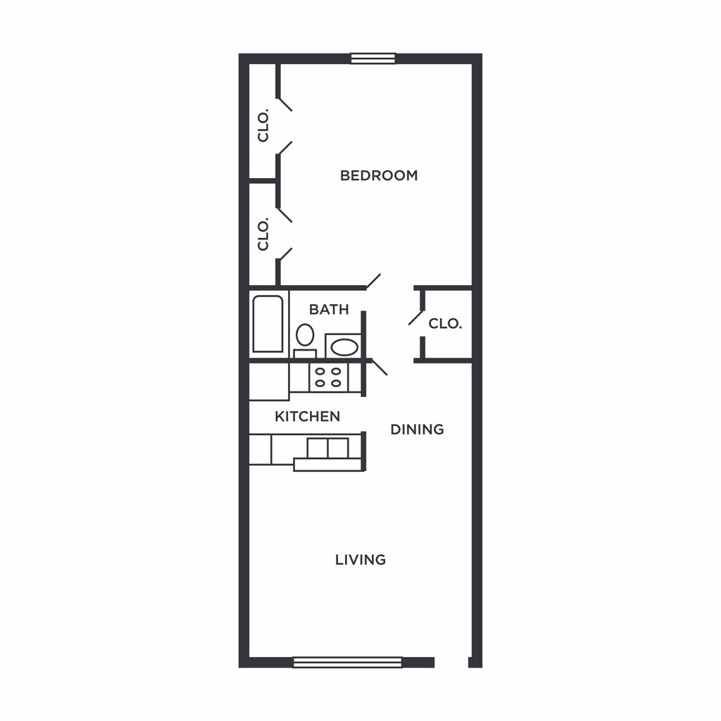 Apartment Model: A$8001 Bedroom, 1 Bath, 600 sq ftUnavailableA - Floorplan 1 Floorplan BU