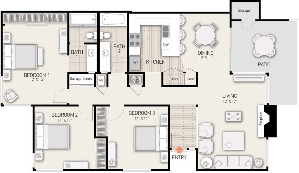 Apartment Model: Plan 3From $2,9652 Bedroom, 1 Bath, 1026 sq ftAvailable Now![]()