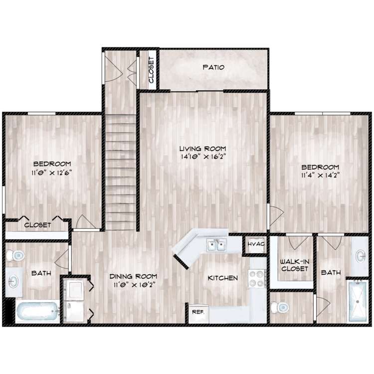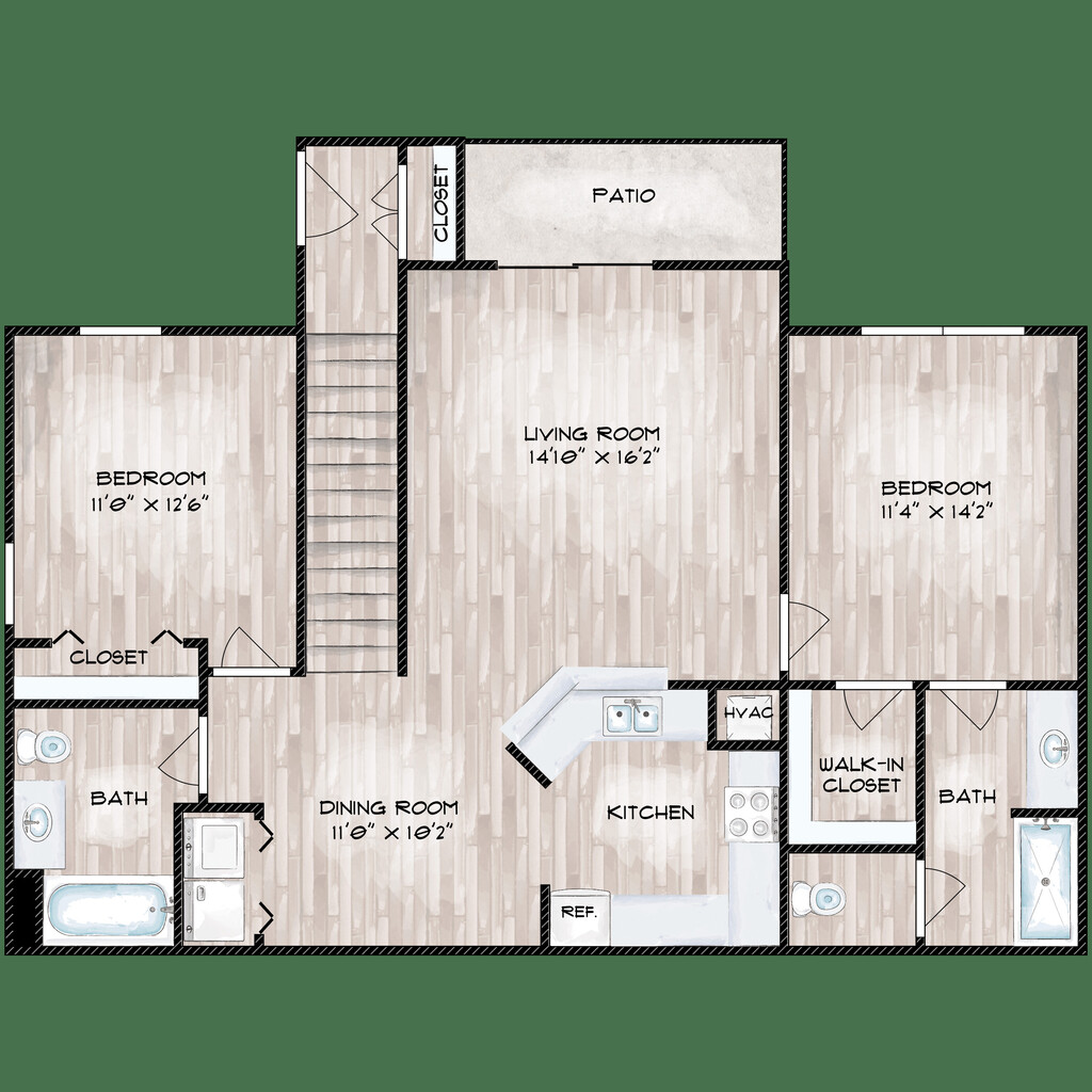 2 Beds, 2 Baths, 1173 sq ftLargest 2 BedroomThis is the largest 2 Bedroom at this PropertyModel Gallery