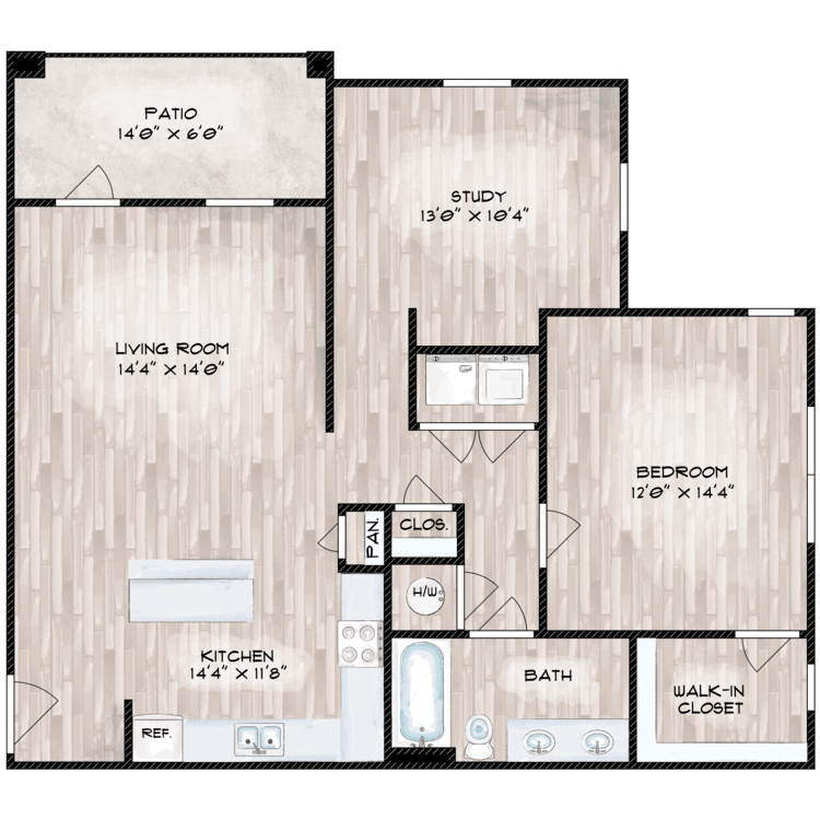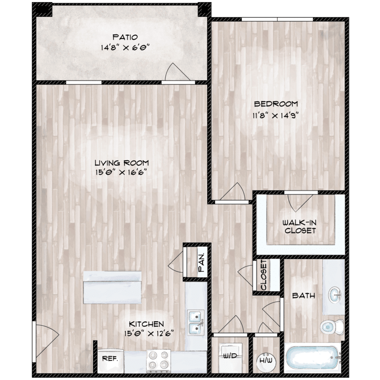 1 Bed, 1 Bath, 755 sq ftAvailable NowModel Gallery