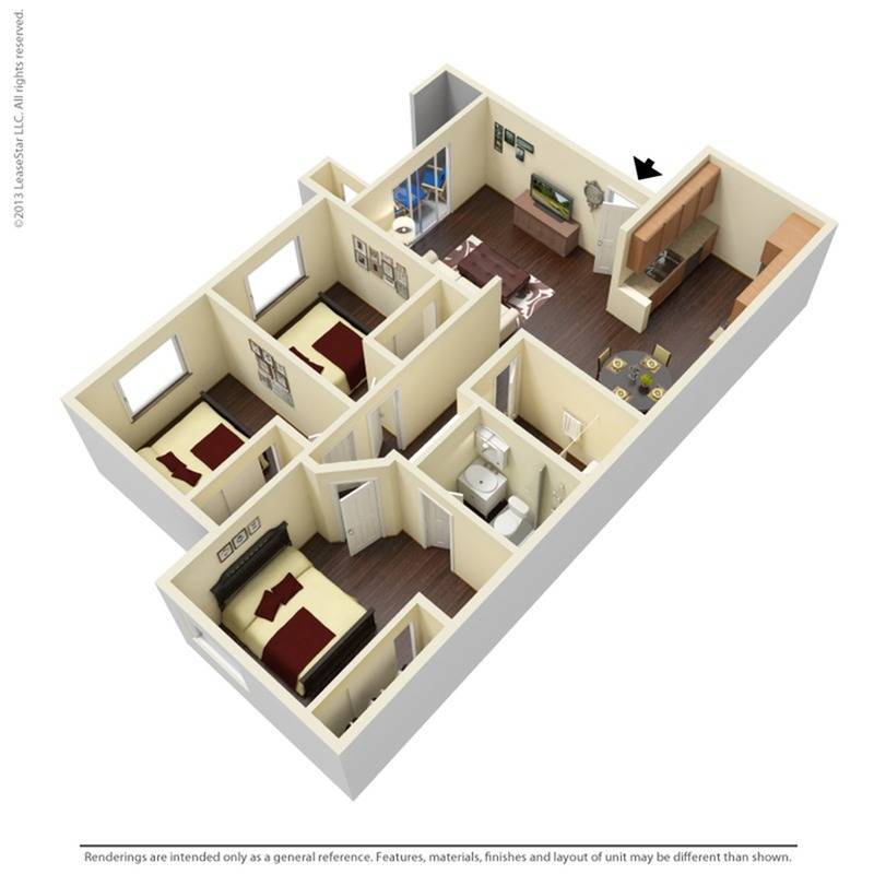 3 Beds, 2 Baths, 992 sq ftAvailable NowModel Gallery