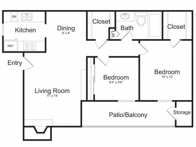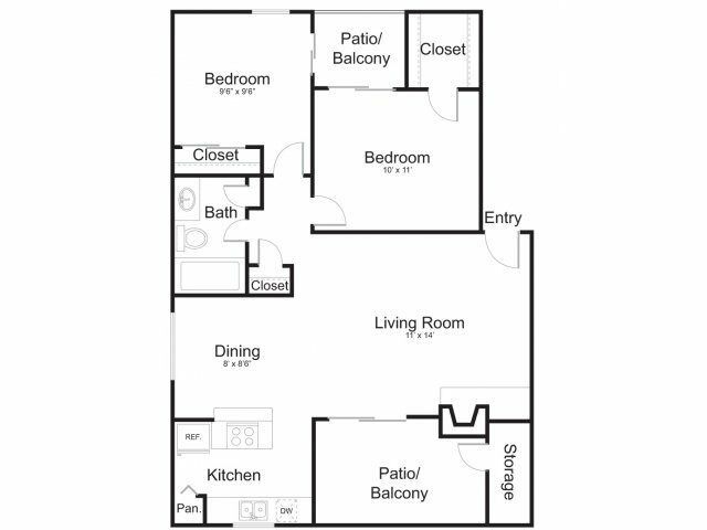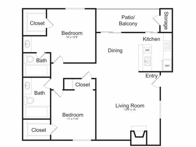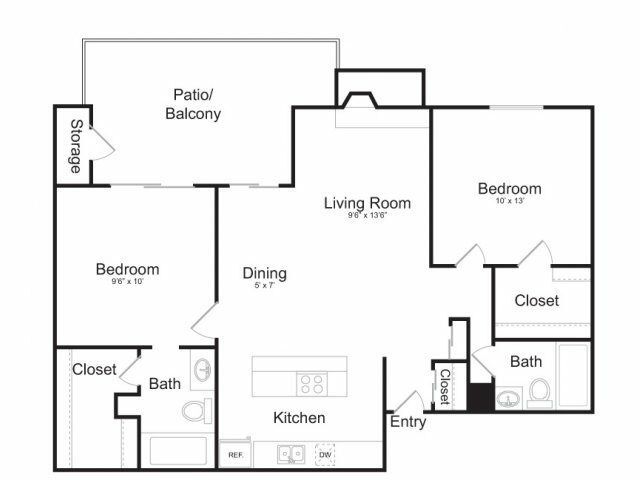 Apartment Model: B2From $8522 Bedroom, 1 Bath, 860 sq ftAvailable NowFloorplansPhotos![]()