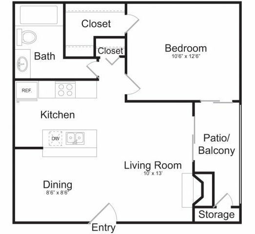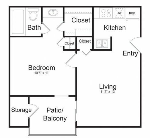 Apartment Model: A3From $6651 Bedroom, 1 Bath, 605 sq ftAvailable Now![]()