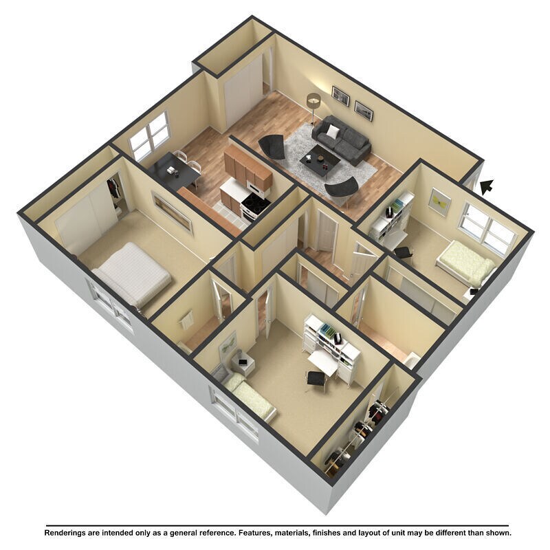 Apartment Model: 3x23 Bedroom, 2 Bath, 1350 sq ftUnavailable![]()