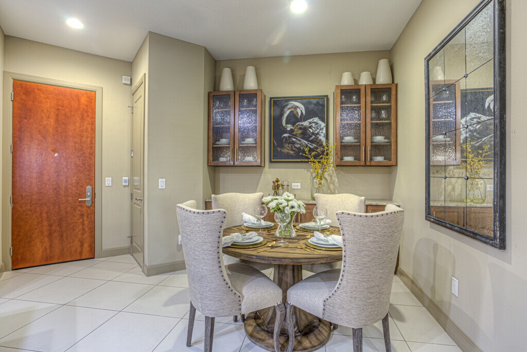Walk inside: our richly appointed apartment homes nestled on the west side of Houston Galleria and the east side of memorial, provide you the perfect home in the perfect Houston location. Ten and eleven foot ceilings, granite island kitchens, private terraces and balconies, signature porcelain tile floors and spacious plans are few of the interior features that make this Houston apartment community a one-of-a-kind in the metro.Walk into the Oasis: our resort-style pool equipped with sun shelf and lap lane, set among our lushly landscaped courtyard fully adorned with imported Medja Palm trees, Jasmine, and seasonal color, with lifestyle conveniences like day cabanas, grilling stations, and meditation fountains provide an escape from the hustle and bustle of Houston city life.