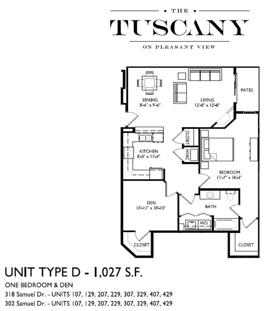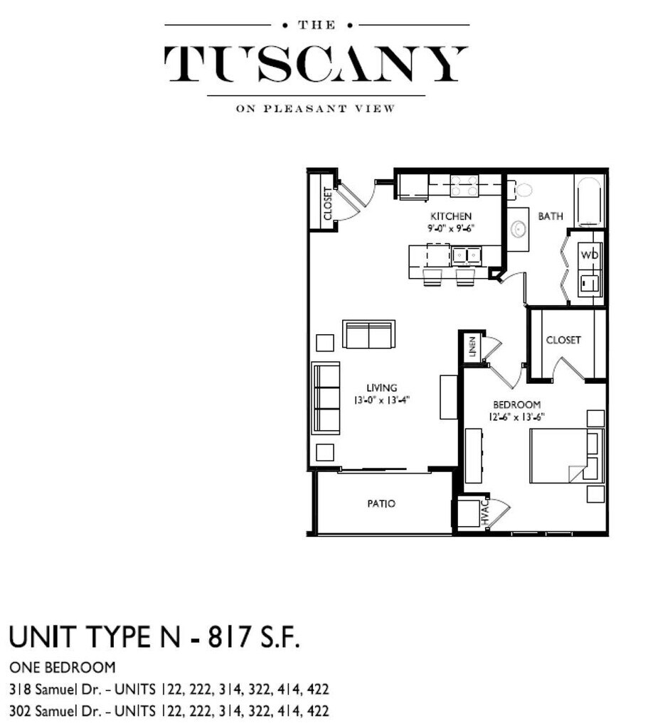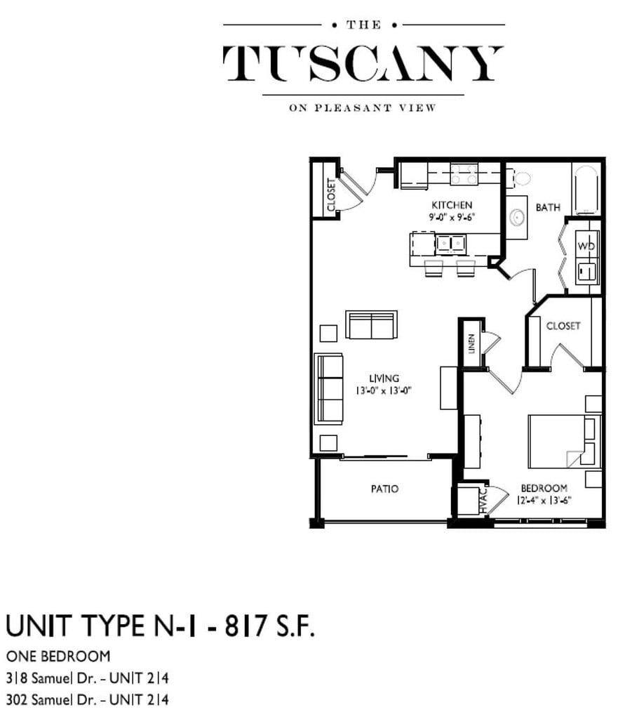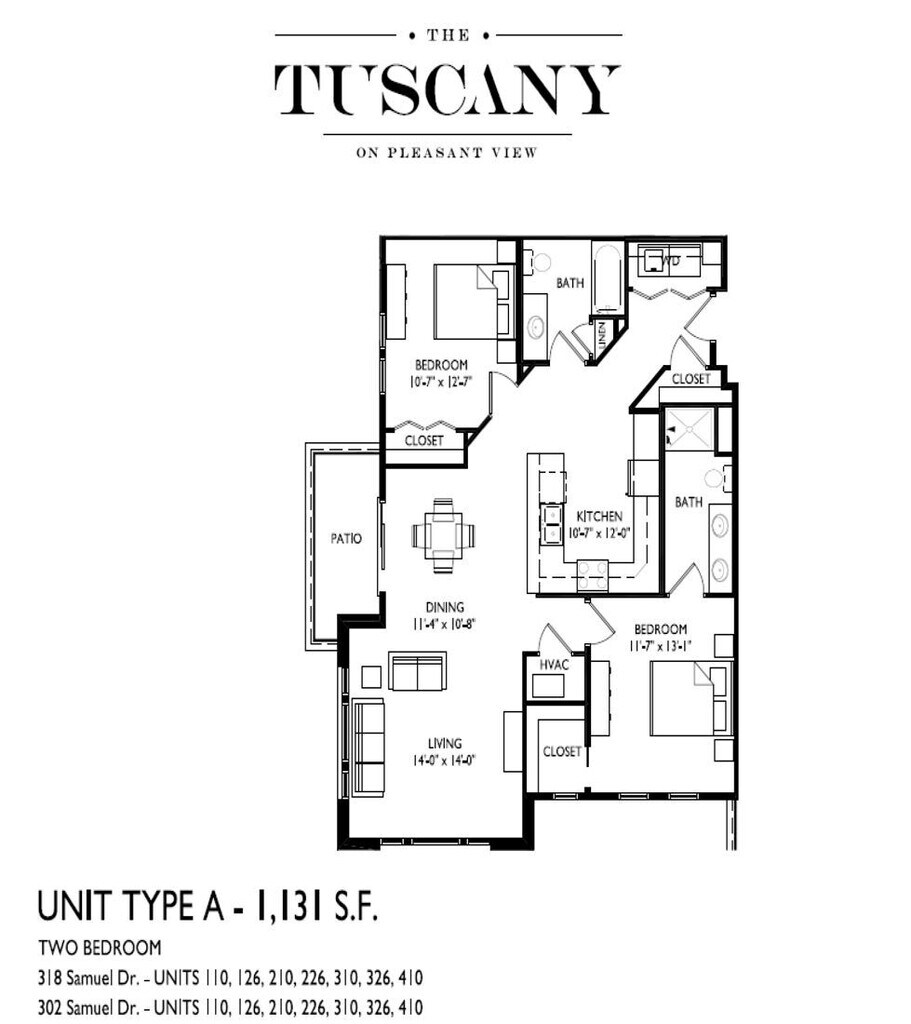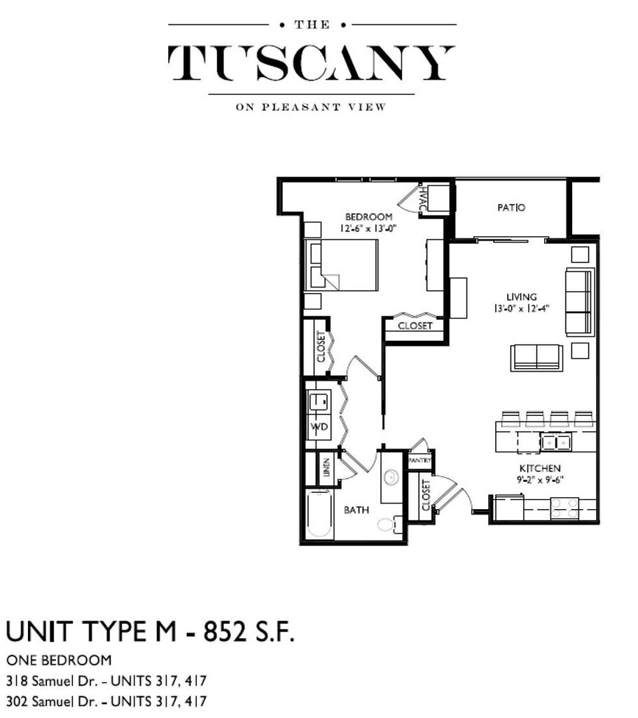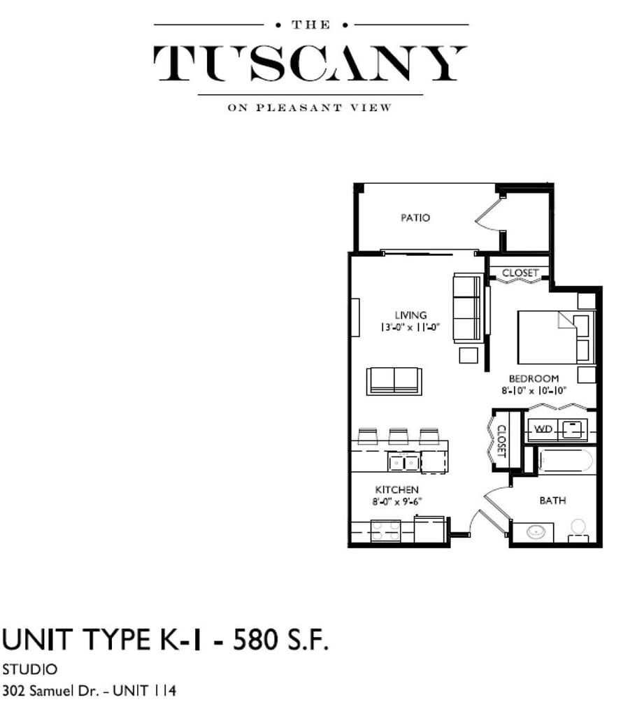 Tuscany on Pleasant View offers Studio to 2 Bedroom apartments starting from $1,400 and having 523–1,309 sq ft. Here is the current pricing and availability: