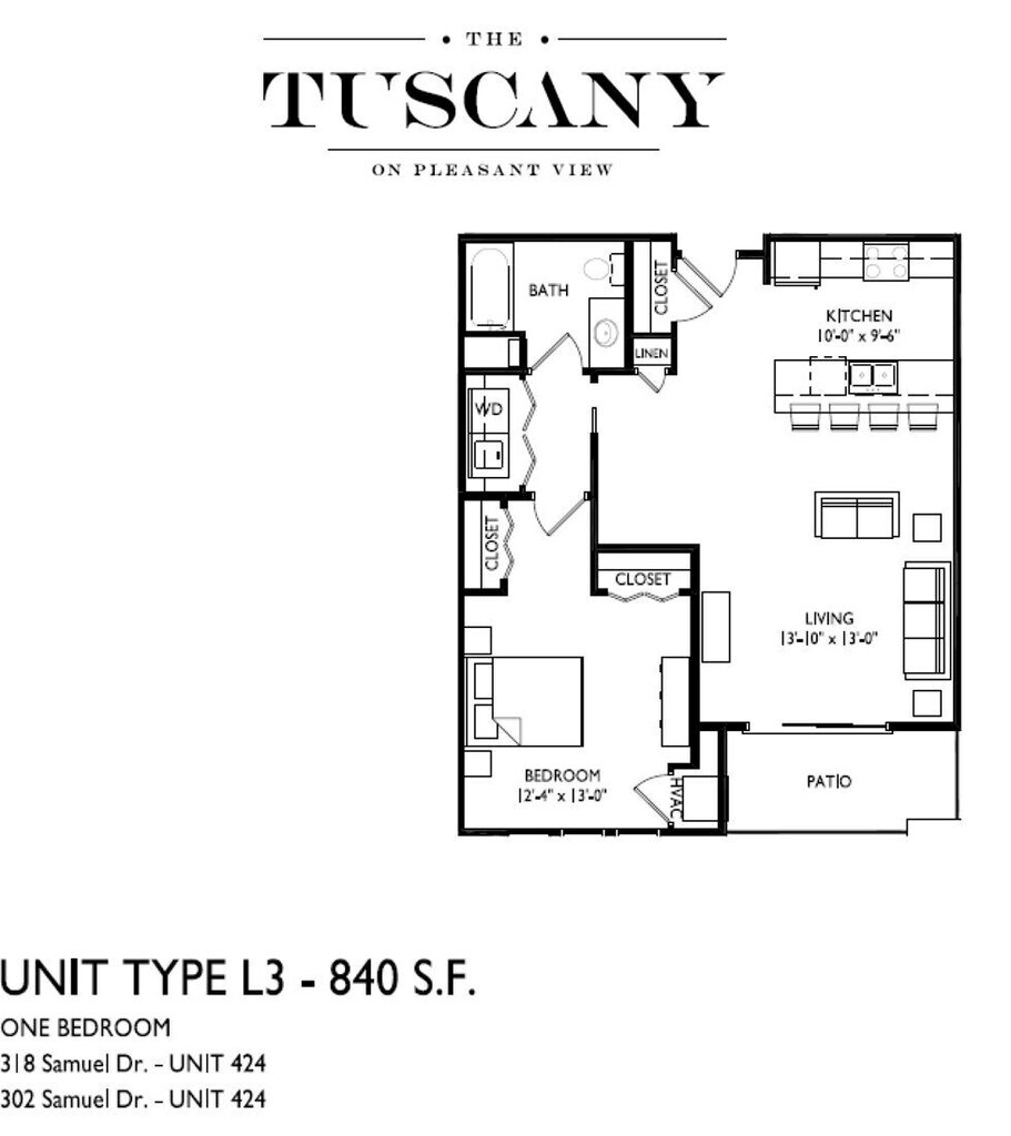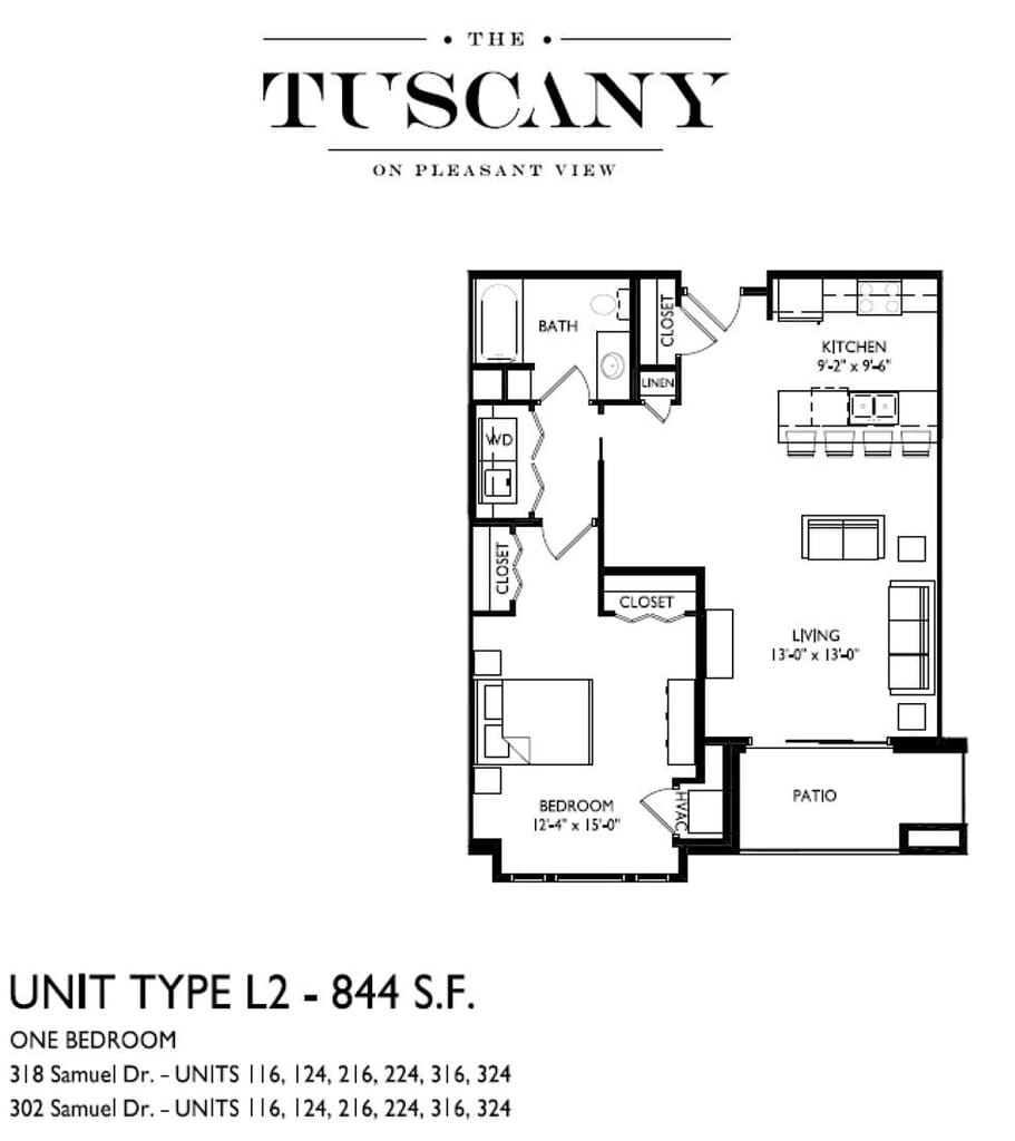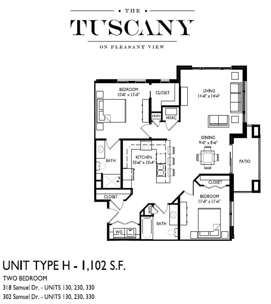 Studio to 2 Bedroom Apartments at Tuscany on Pleasant View currently range from $1,400 to $2,145